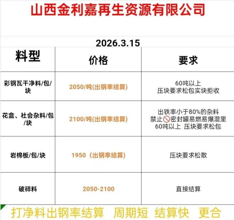 ****年*月*日山西金利嘉再生資源報(bào)價(jià)部分上調(diào)