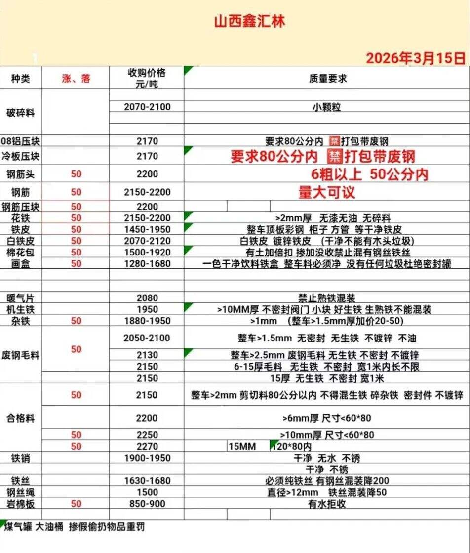 ****年*月**日山西鑫匯林再生部分上調(diào)